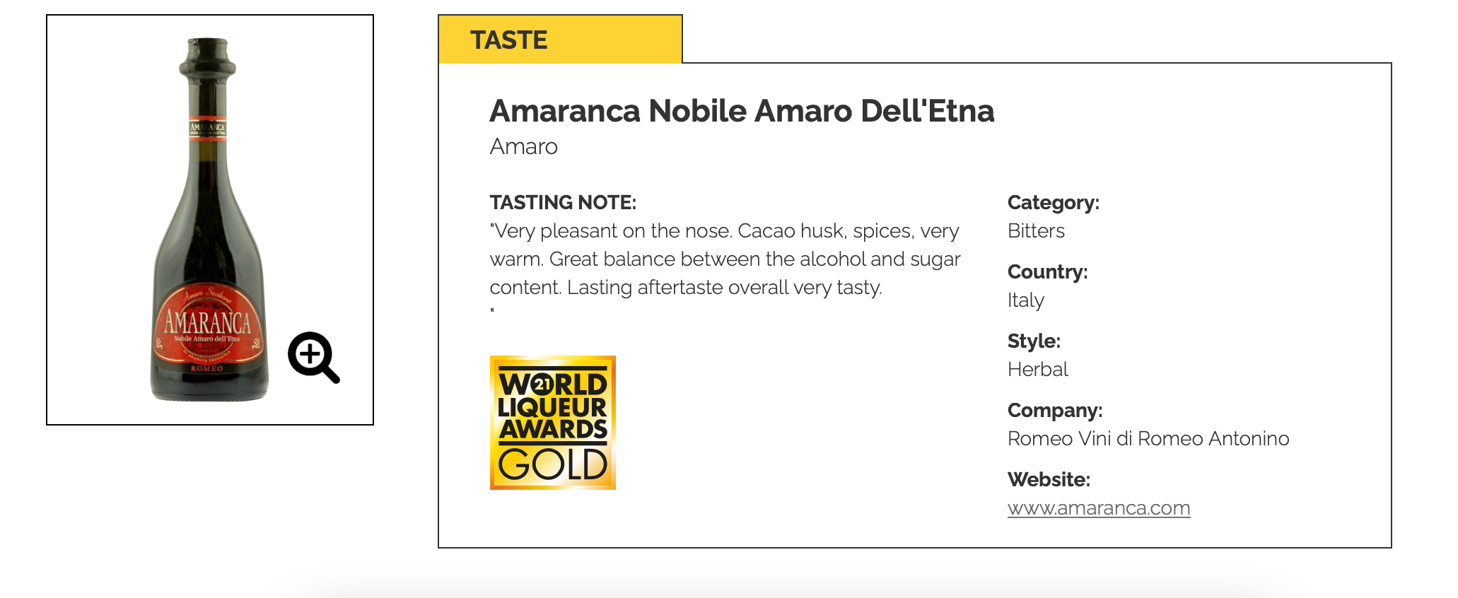 CATANIA. Spicca un siciliano tra i sei migliori amari del mondo. Infatti c’è anche Amaranca, l’Amaro Nobile dell’ Etna, ad aggiudicarsi la medaglia d’oro per il “World Liqueur Awards 2021”, prendendo il suo posto nella sezione “Migliore amaro italiano” nella categoria “dorati”.